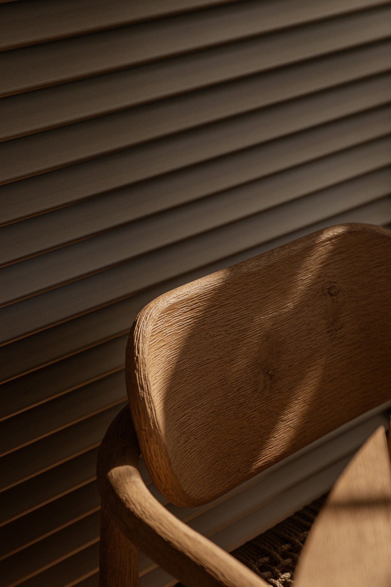 Trabajamos la luz de forma muy natural, sin forzar, dejando que el espacio hablara. Piel, madera, telas, exteriores… todo con ese punto relajado que tiene Formentera cuando está bien entendida.